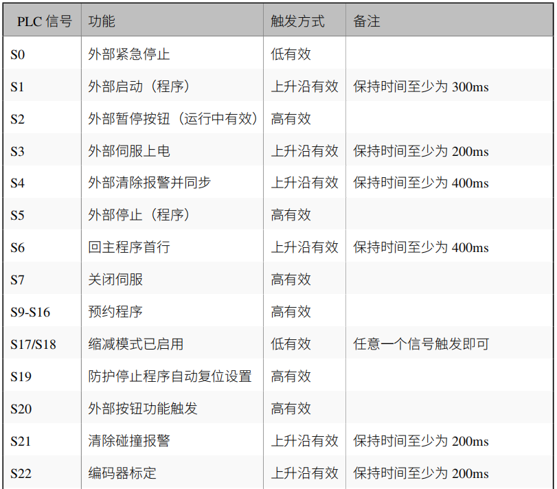 注:以上“X004”是机械臂开机后一键启动的触发信号,这个信号可以更改为虚拟信号触发,也可以外部PLC触发。