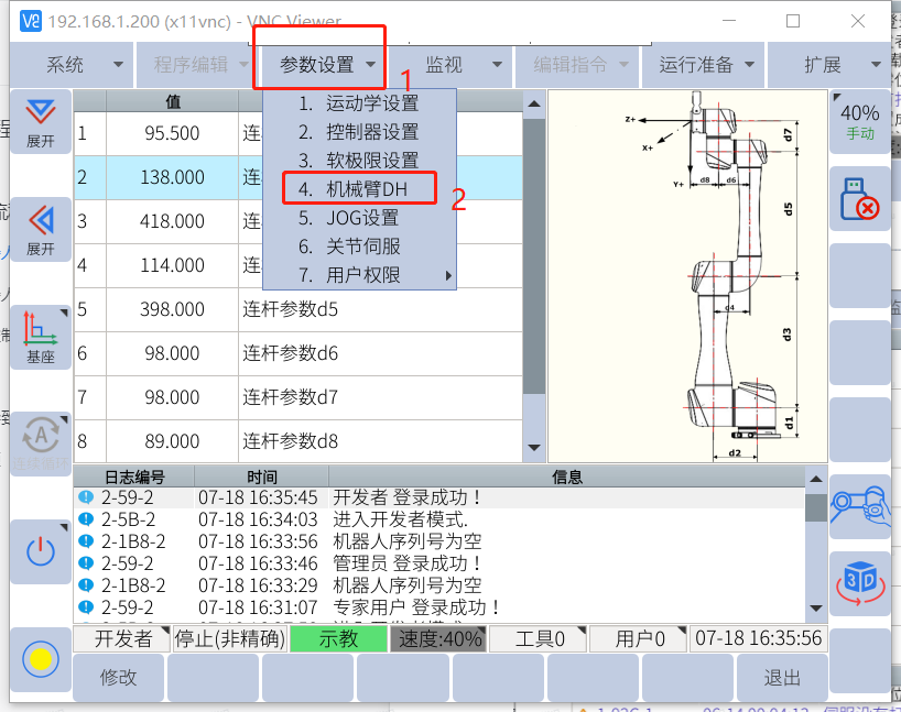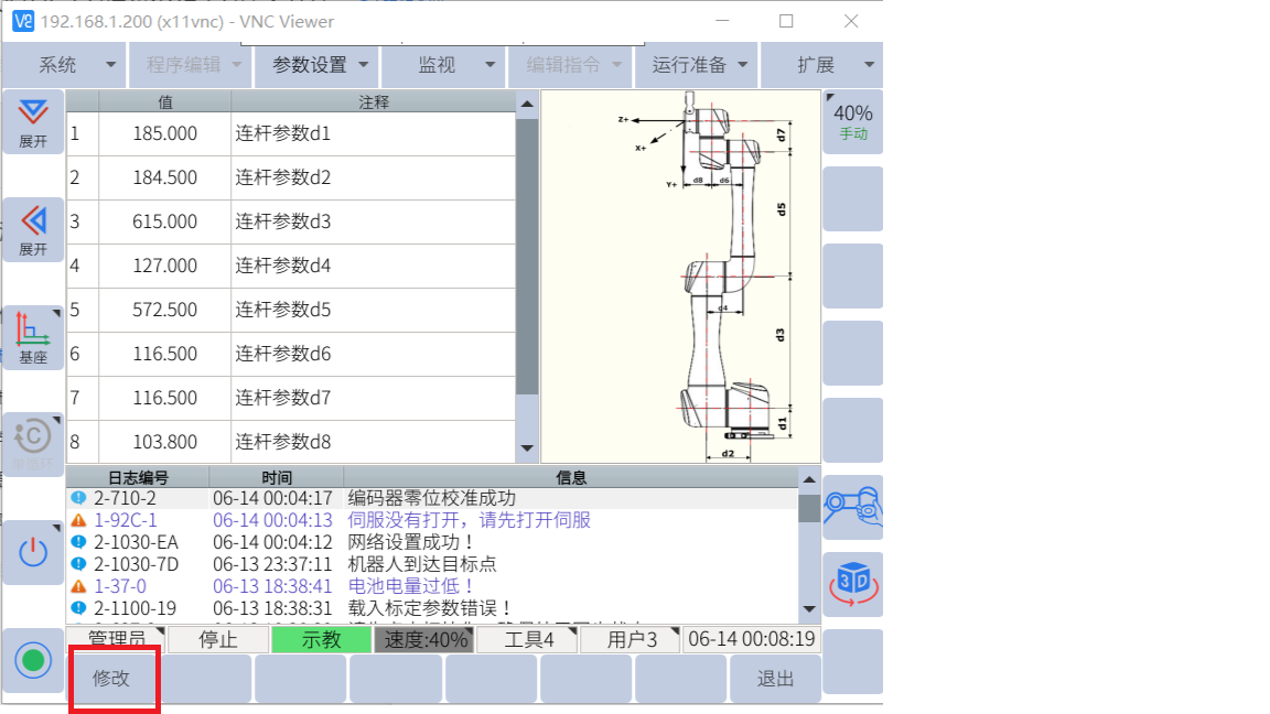 记录新机器DH参数。-点击参数设置-机械臂DH,并拍照记录。