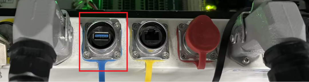 将U盘插入控制柜USB接口,确保U盘正常识别,示教器界面点击系统-文件备份-备份用户数据备份及全局变量备份。记录机器人网口IP,主程序名。(单独记录)