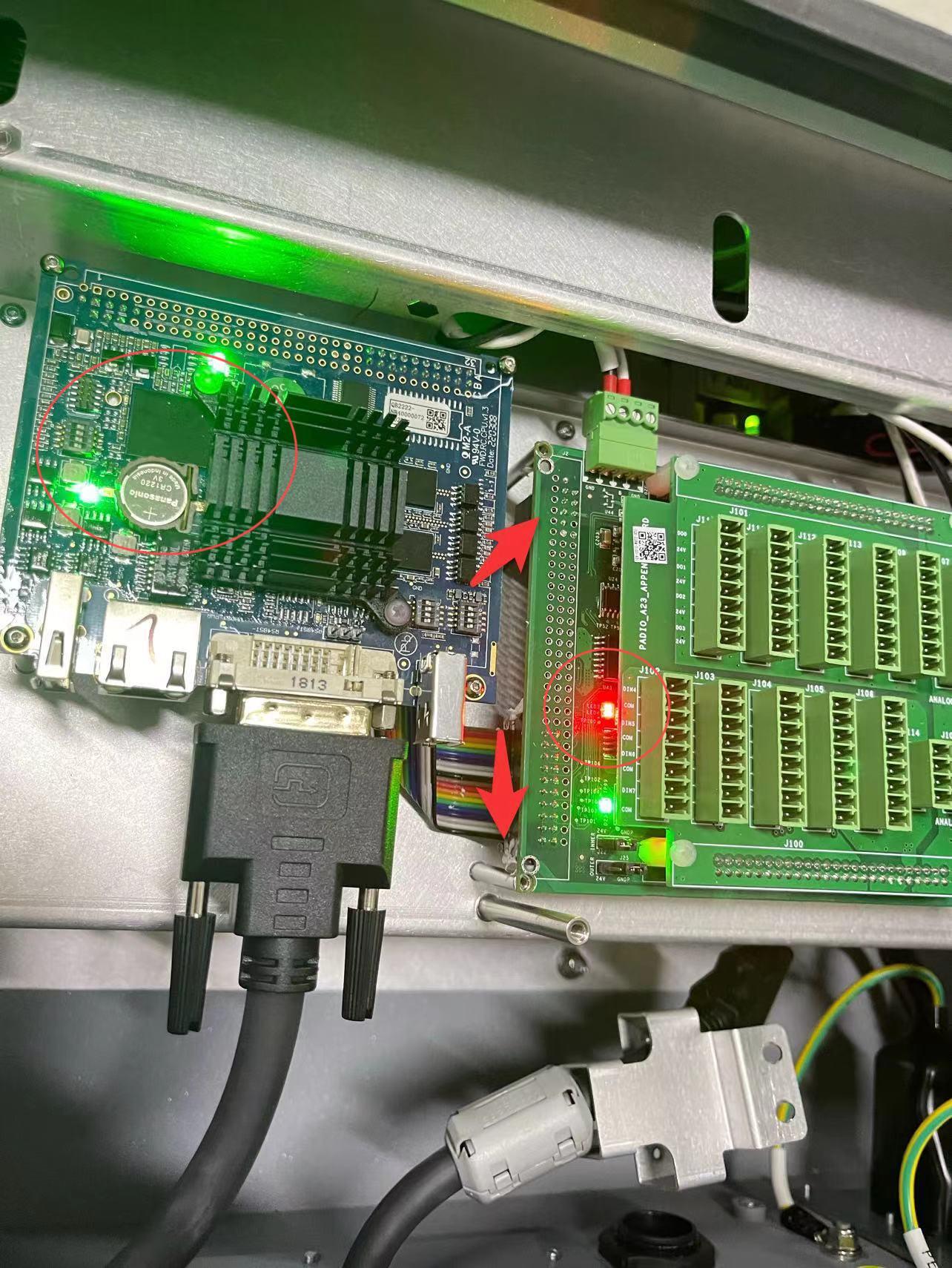 当核心板、IO板异常或者核心板与IO板连接处虚接时,也会造成机器人频繁重启,当电源模块都是正常情况下,可以通过排查核心板和IO板来解决,一般IO板会亮红灯或者核心板指示灯闪烁,可以通过重新插拔连接处或者更换新的核心板或者IO板来解决