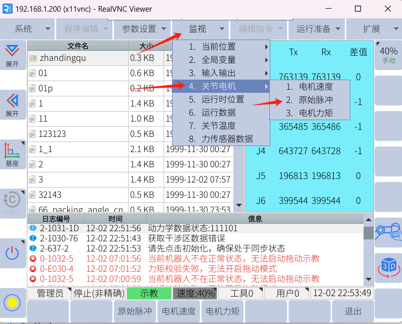 如果机器人报警70时,同时报警90,91,92,100的话,可先查看机器人关节脉冲,如果差值较大,则优先排查70报警,其他报警是由70引起。