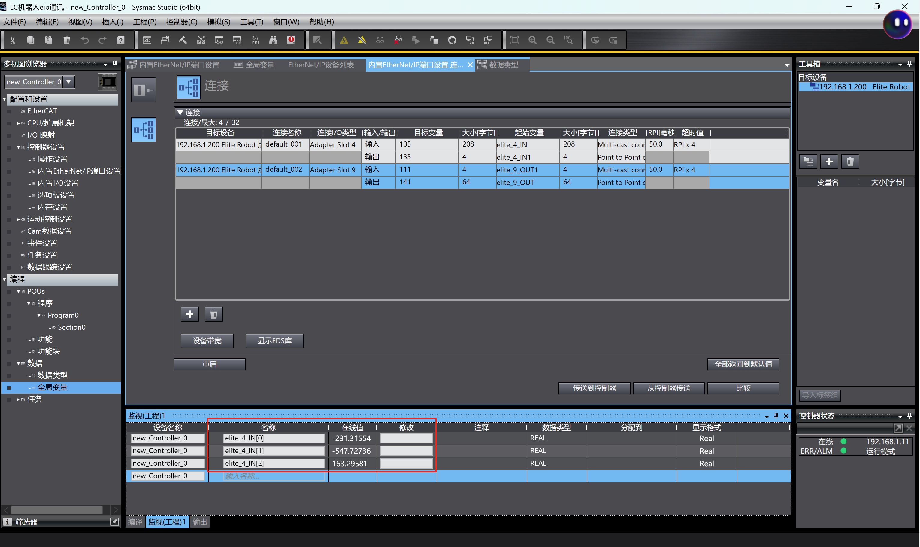 EC机器人与欧姆龙EthernetIP