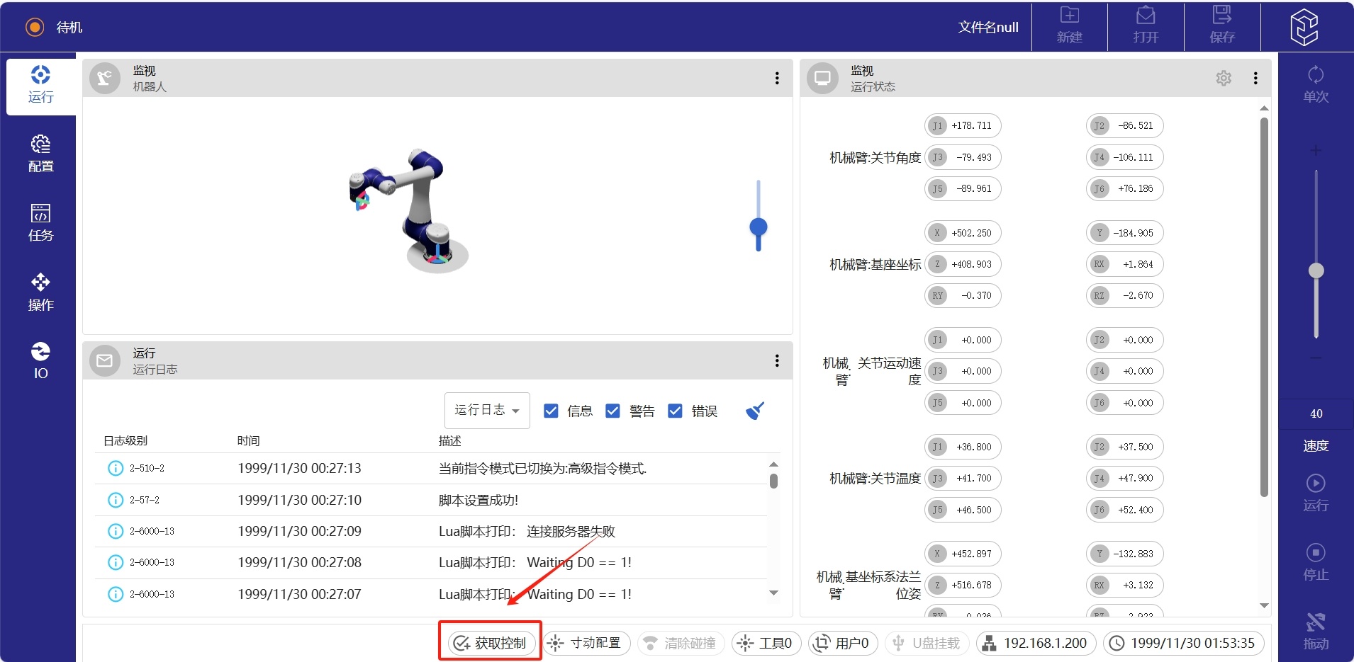 打开浏览器输入 http://192.168.1.200:6680/,(192.168.1.200根据当前机器人IP进行替换)