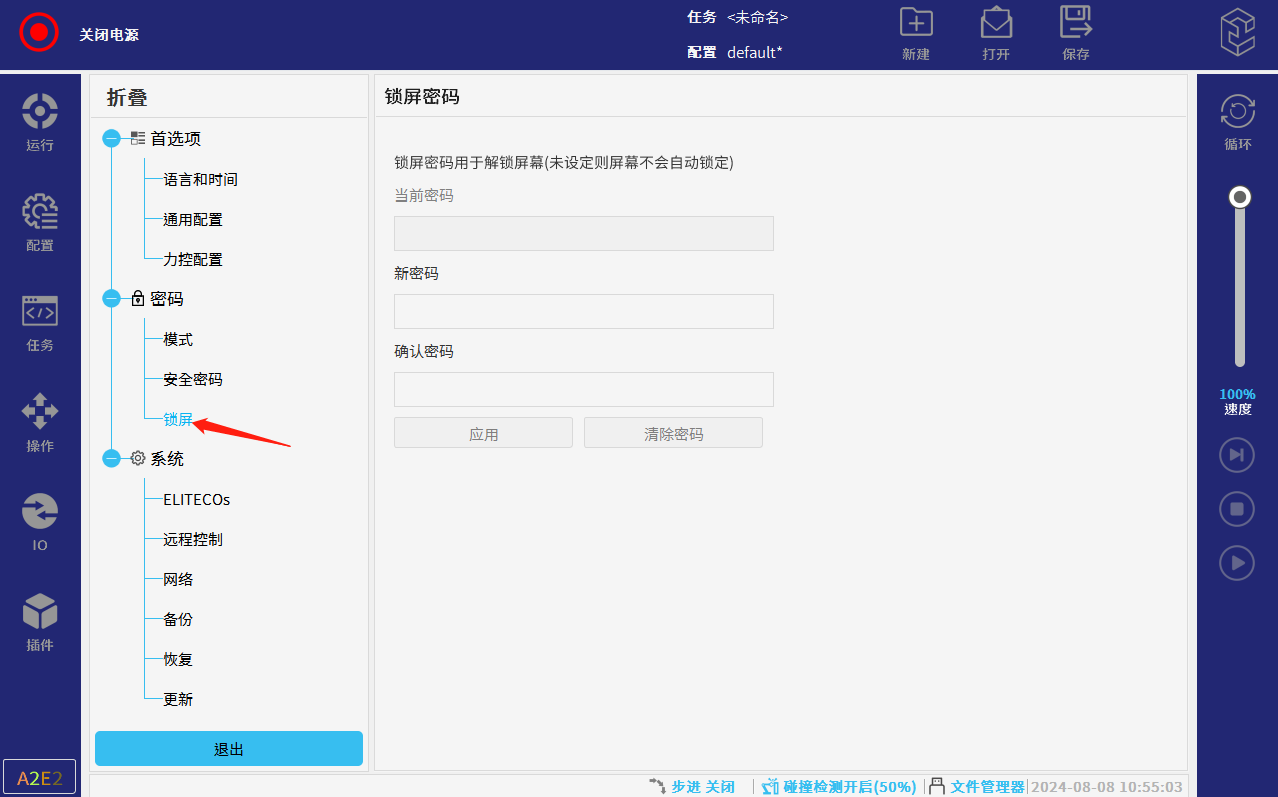 需要注意,2.13之前的版本,屏保只有自动锁屏,没有手动锁屏。设置好自动锁屏时间 后,规定时间内示教器没有任何操作,才会锁屏。