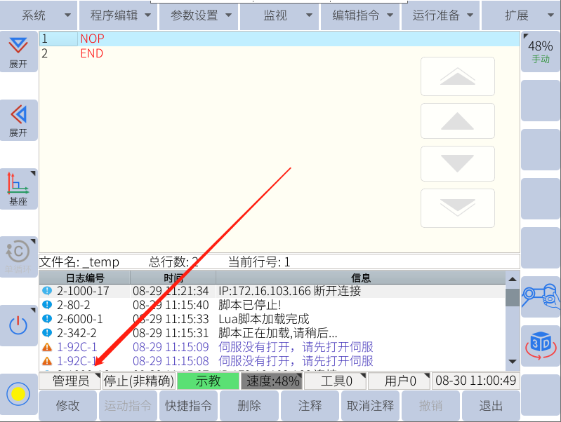 在某些情况下会出现“肘部力或者工具超过安全限制”的提示,会暂停运行的程序。