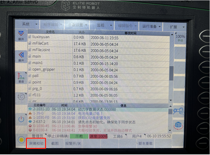 如屏幕校验后仍触摸失灵可能是屏幕屏坏了可检查触屏有无磕损或触摸屏硬件接口故障 。现场如有第二台好的示教器可更换示教器测试,触摸屏依旧失灵可能是核心板故障。