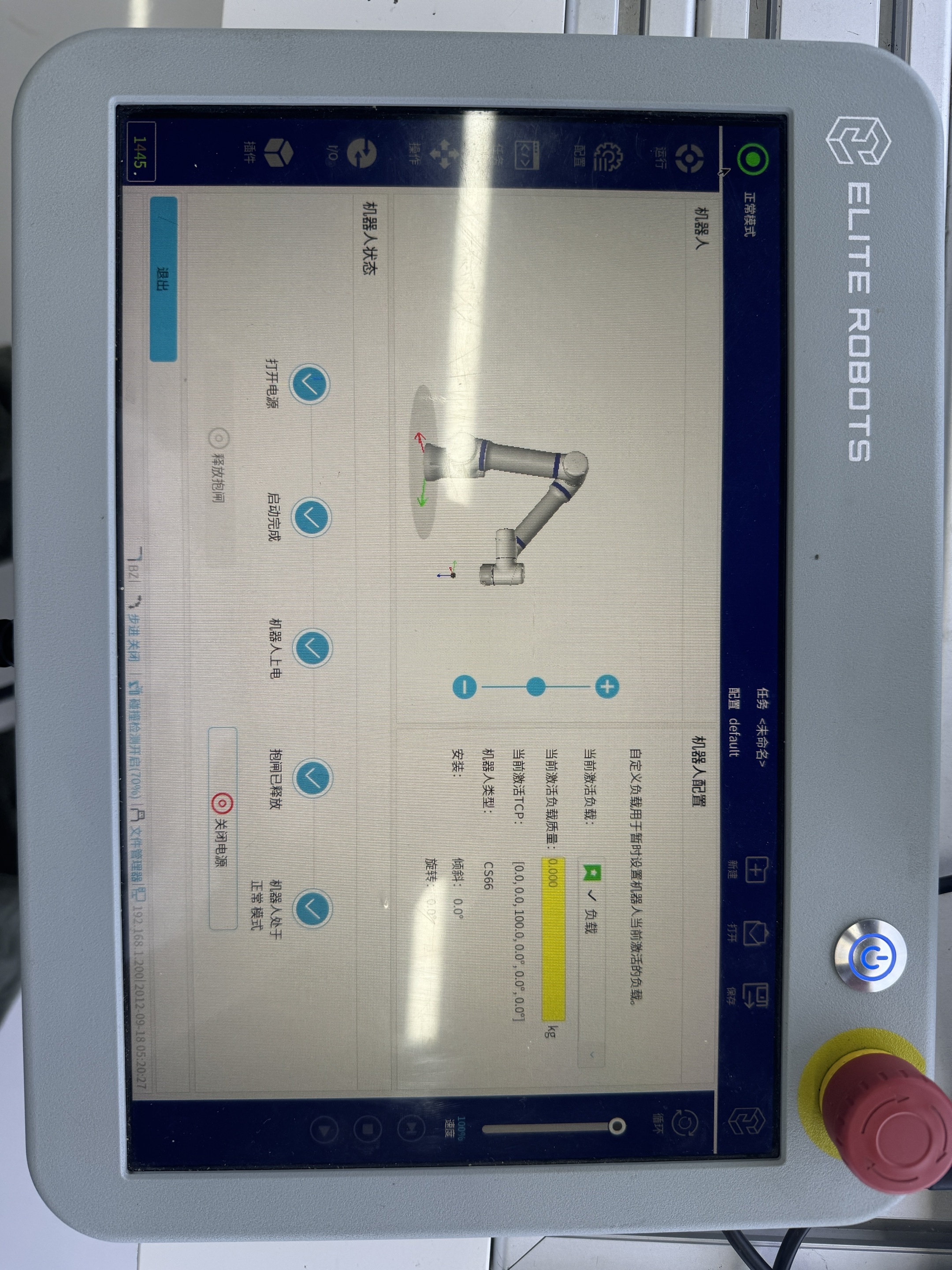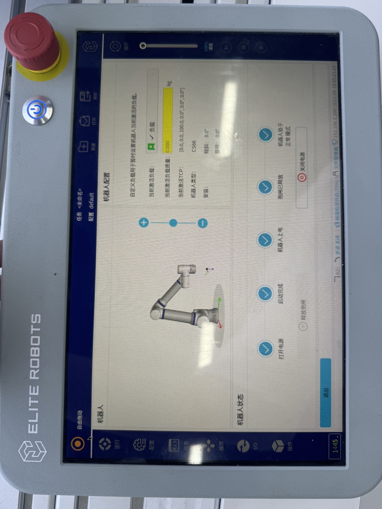 1.  测试示教器上的急停停止按钮功能: