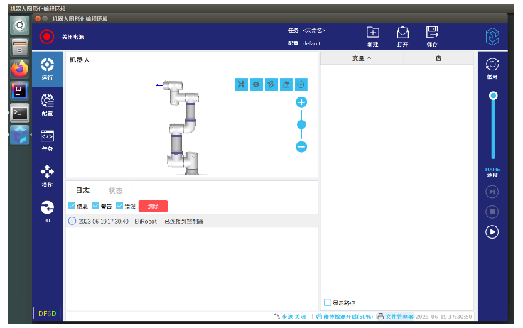 在没有机器人实物时AG庄闲可以通过虚拟机把AG庄闲的程序先编写出来,这样在项目现场时就不需要再用时间去进行程序的编写了,可以加快项目进度。同时在不方便使用示教器实物查看程序时AG庄闲也可以通过虚拟机去查看程序。在验证一些功能,做一些测试时同样也可以在虚拟机上进行。