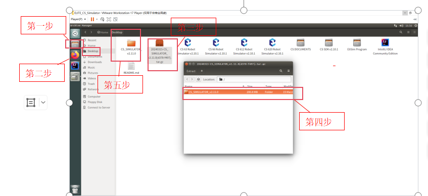 第三步:将下载好的机器人虚拟机文件粘贴在“Desktop"中,并双击机器人虚拟机文 件压缩包,就会出现图-19中的弹窗