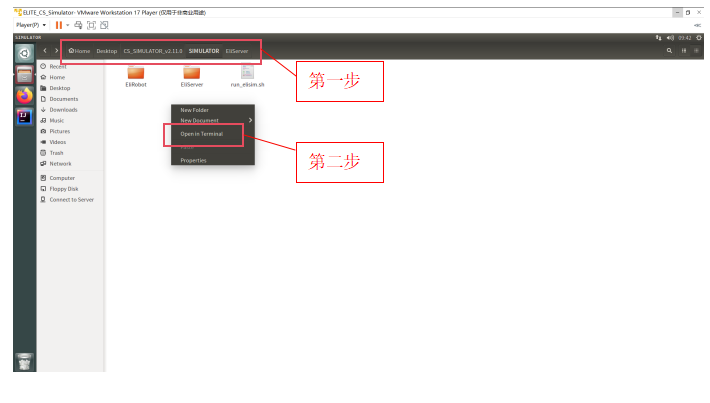 2.7.2将机器人虚拟机文件放入VMWare虚拟机中,如图-19操作步骤所示