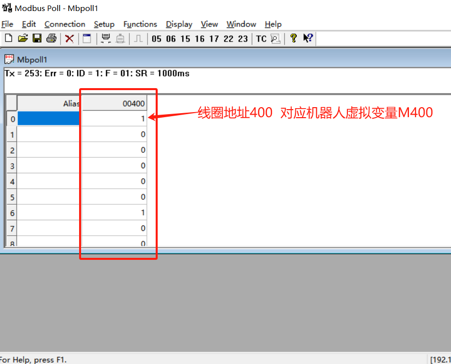 4. ModBus 协议中一个寄存器为 16 位变量,因此对 M 变量的一个寄存器地址进行操作,实际操作的是连续的 16 个 M 变量。