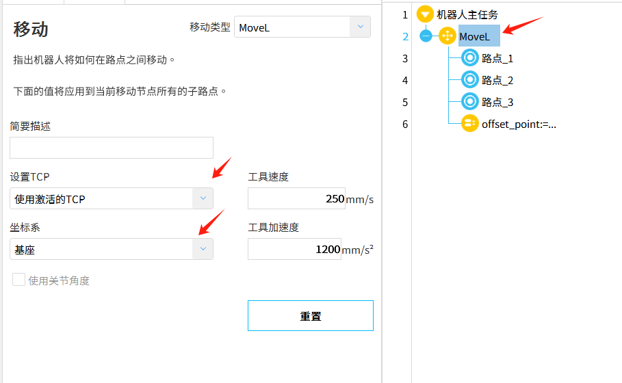 3.4要注意偏移后的点位数据是在那个坐标系下,与移动指令配置中的是否相同。