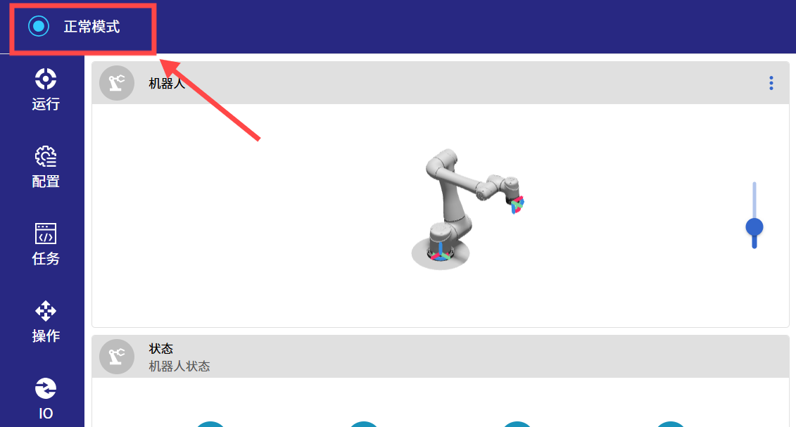 (5)如果机械臂报警提示“机械臂未进入远程模式”或者“示教器连接状态未断开”需进行如下操作(示教器插头已拔出)。进入网页版示教器后,需点击下方获取控制按钮,获取机械臂控制权限,否则机械臂无法操作。然后点击右上角的设置界面,打开VNC,然后点击参数设置>控制器设置>示教器连接状态,把示教器连接状态改为断开。